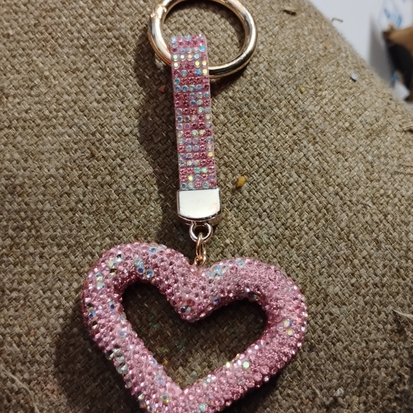 Add a touch of sparkle to your accessories with this pink heart keychain. Perfect for adding charm to your bag or keys.