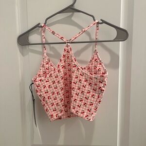 This pink sports bra features a charming heart pattern, perfect for adding a playful touch to your intimates collection. The racerback design with adjustable spaghetti straps ensures a comfortable and secure fit. Made from stretchy, form-fitting fabric, it's ideal for both active and relaxed days.