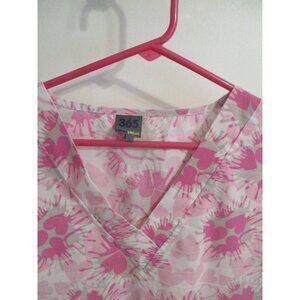 Pink Heart Pattern Womens Scrub Top Large Work& Wear Valentine