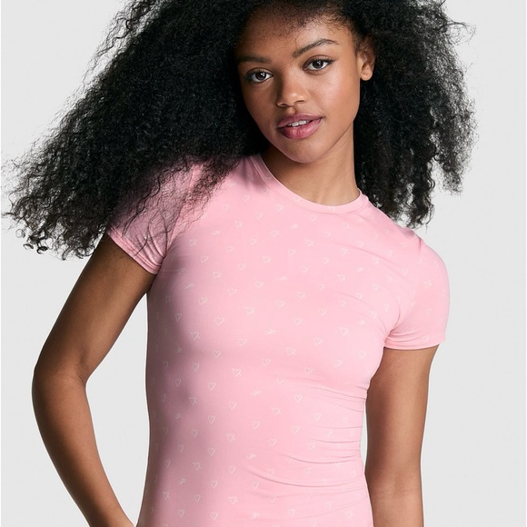 Chic and comfortable pink top with a subtle heart pattern. Perfect for casual outings.