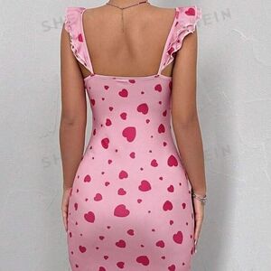 Pink Heart Print Ruffle Dress.