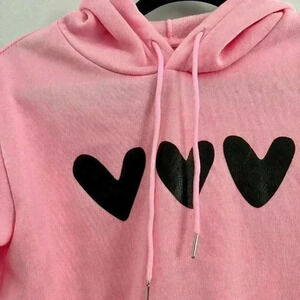 Pink Heart Print Sweatshirt Hoodie Pullover