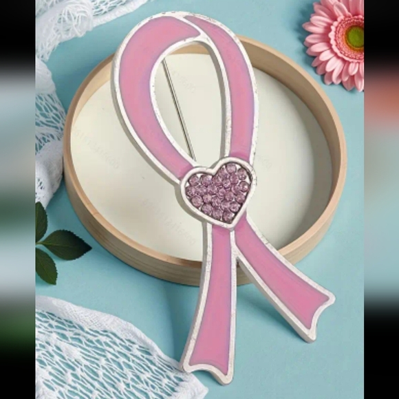 Elegant pink heart ribbon brooch, perfect for adding a touch of charm to any outfit.