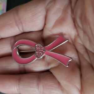 Pink Heart Ribbon Brooch