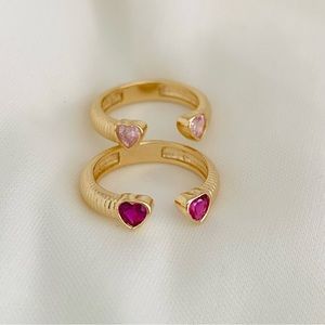 Our pink heart rings will give a touch of freshness and youth to your hands; the two tones can be combined or with other styles; these gold heart rings are adjustable and open at the top, providing a fine and delicate touch to your fingers, are ideal for giving to that loved one. Separate this loving ring, and I will prepare it for you.