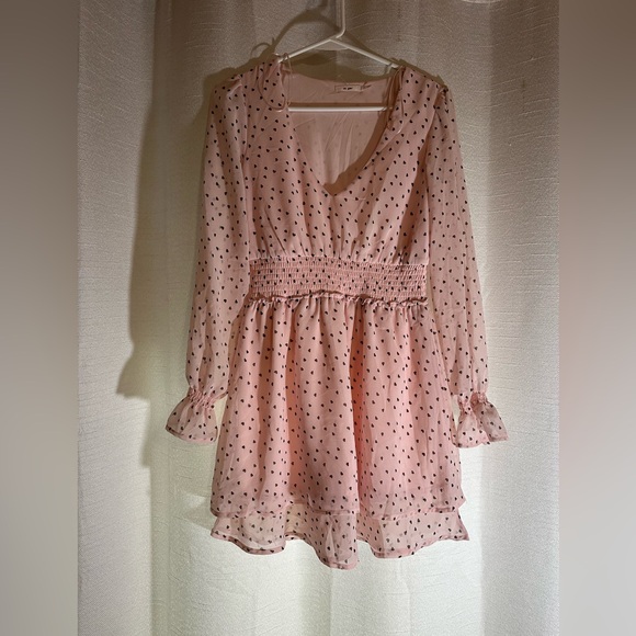 Adorable ruffle heart dress with cinched waist. Worn once, excellent condition. Purchased from Francesca's. 100% polyester.