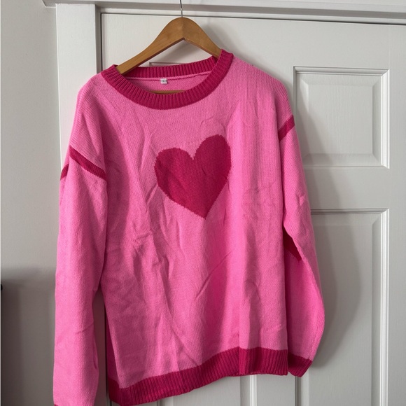 Cozy and stylish pink sweater featuring a charming heart design. Perfect for adding a touch of warmth and love to your wardrobe.