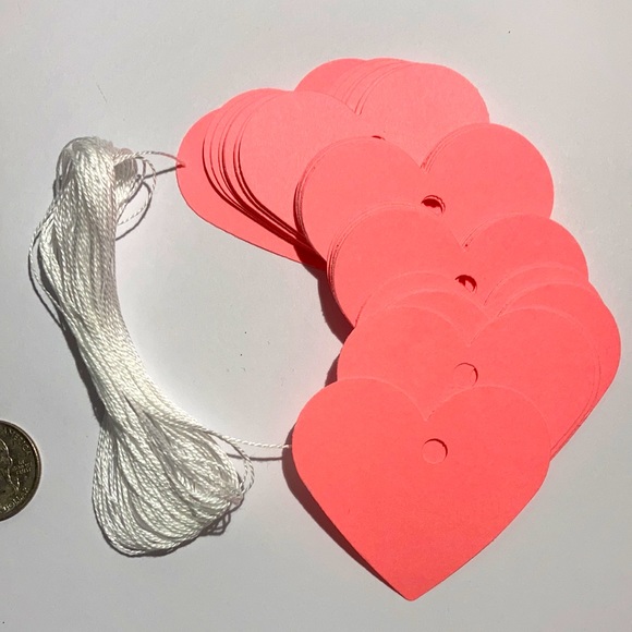 New-Handmade 🖐✂️ Pink tags. Perfect for any beautiful projects. You can use it as a thank you note, attach to your sales, for crafty projects etc. The listing is for 25 Pink Heart 💖 tags. Size of the tags is 2 3/8".You will receive a white cotton string that you can use to adjust its size on the tags(if you use 10" on each tag it is going to be enough😊. Have fun and like everything you like😁 and i will send an offer. Mix, Bundle and save💰.