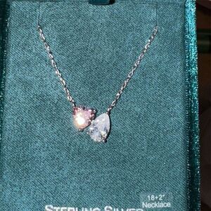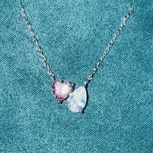 Pink Heart White Pear-Shaped Cubic Zirconia You & Me Necklace in Sterling Silver