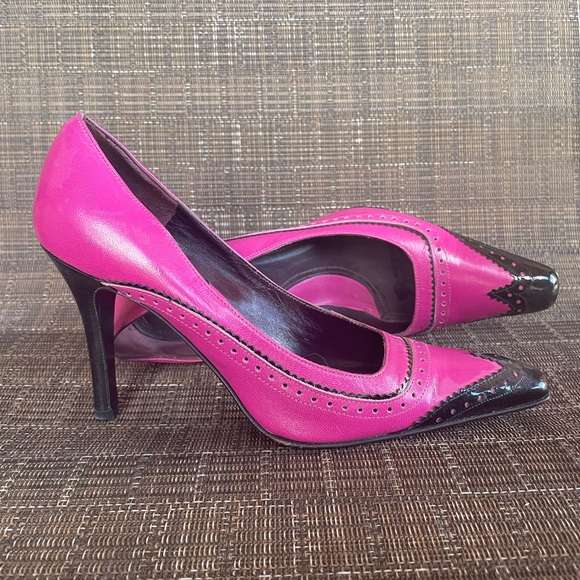 3.5” pink & black heels. Genuine leather. Made in Italy. Worn once. Excellent condition.