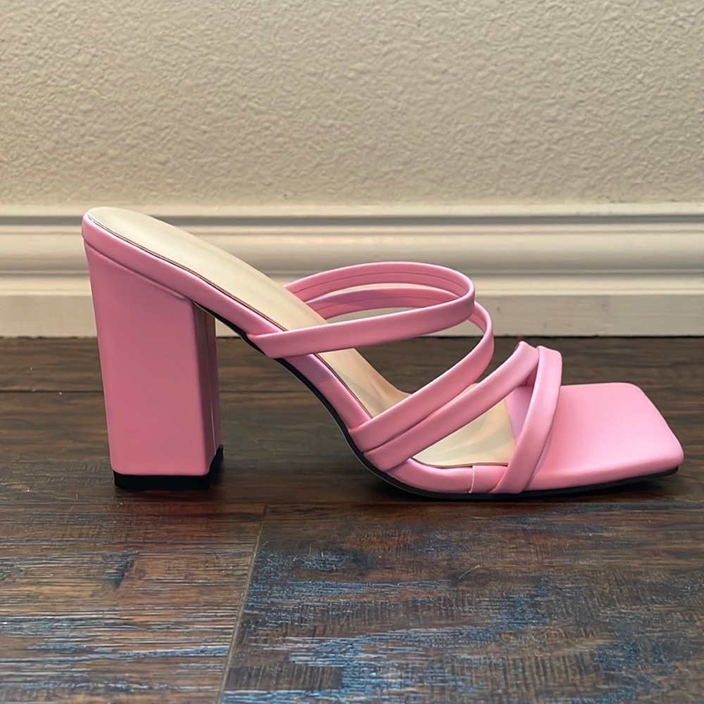 Pink strappy heels. Never worn! Too big and I am usually a 7-7.5
