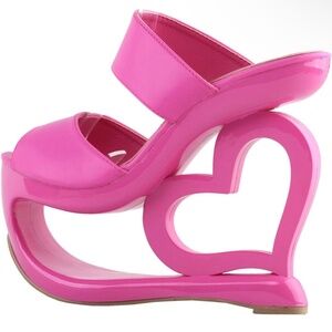 Retro Pink Open Toe Heart Heel Wedge Wedding Evening Slip-ons Sandals, LF40220