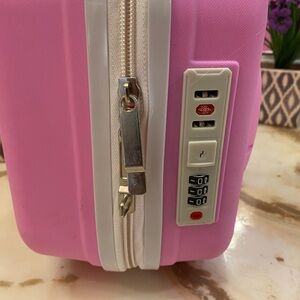Cute pink Hello Kitty hard shell case with white handles. Perfect for travel or storage. Has combination lock ( instructions on how to set up your combination code is available online)