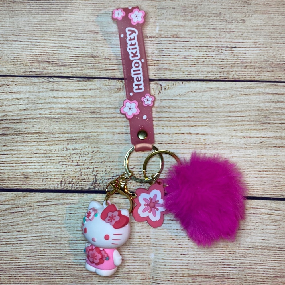Hello Kitty Keychain With Pink Pom Pom