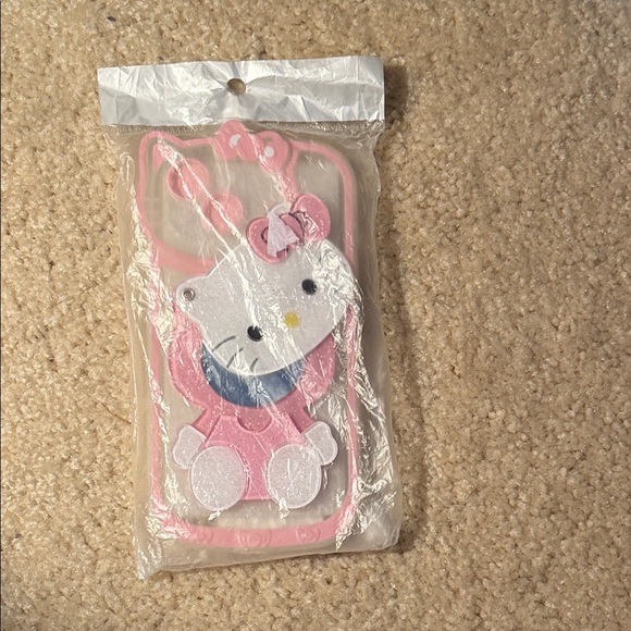 Cute pink Hello Kitty phone case with mirror. Features a playful design with a bow. Unopened.