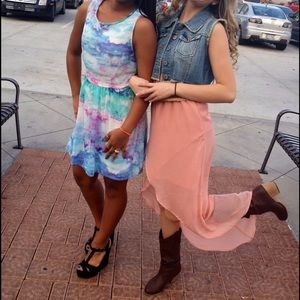 Hi Low Dress , soooo cute! Loved this dress when I wore it, only once for my sisters birthday (pictured in last photo) , it comes with a light tan belt (not pictured).