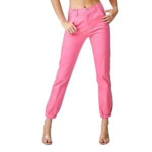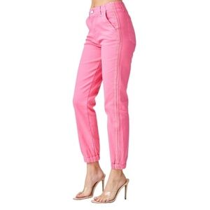 With a flattering high-rise waist and trendy jogger cuffs, these jeans combine the structure of denim with the laid-back vibe of joggers.