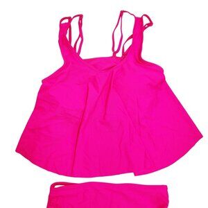 Pink High-Waisted Bikini Set Strappy Tankini Top Ruched Bottoms Size M Swimsuit