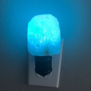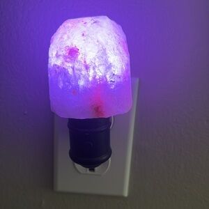 Pink Himalayan salt night lamp plugs into wall.