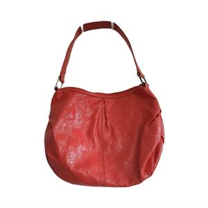 Stylish and vibrant pink (coral) hobo shoulder bag perfect for any occasion. Add a pop of color to your outfit with this chic accessory. Zipper opening, 14" across, 10.5" high with the strap 7" above the purse. In great condition. No visible wear.
