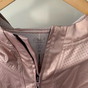 Never worn! Rose gold hooded jacket with a front half zipper. Size M.