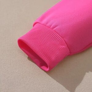Vibrant pink hoodie with bold logo design. Comfortable and stylish.