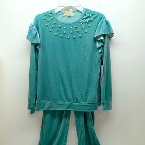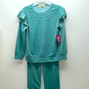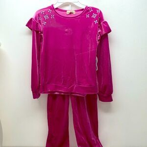 Pink hoodie and pants set featuring 'LOVE' lettering. Includes a white tank top. All brand new with tags.