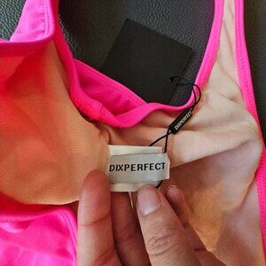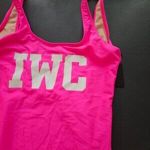 Pink IWC one piece swimsuit. One piece hot pink suit, IWC in white on the front.
