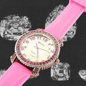 Pink Iced Out Diamond Bezel watch w/ pink CZ stones Silicone band