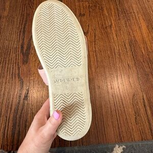 Worn but have a lot of life left. Could be cleaned off. Double Velcro strap and platform.