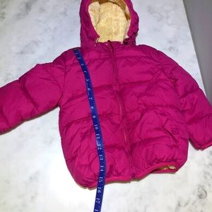 Kids pink jacket. The only tag is the one with size, no brand name. Lightly worn but excellent condition no stains or flaws.
