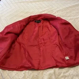 Lined pink jacket with button closure. Open pockets (button is faux closure). Great condition.