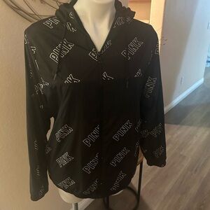 Pink Jacket Womens Small Black White Logo Spellout Windbreaker