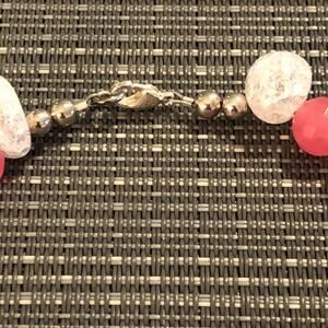 NEW - Pink Jade & Clear Crystal Handmade Beaded Ankle Bracelet with diamond cut pink jade beads, clear crystal oval shaped beads and a silver Lobster Clasp.