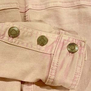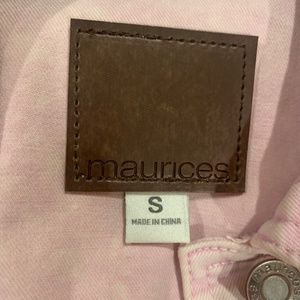 Pink jean jacket by Maurices. Longer length pink jean jacket - super cute! Embellished with silver button sleeves and buttons down the front. Tie belt can be tied in front or back. NWOT