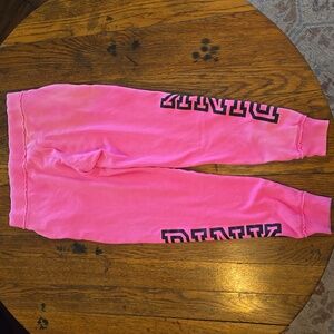 Bright pink joggers S/P, side pockets with drawstring waist. No rips or holes but a