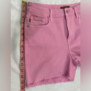 Pink Judy Blue Full Size High Waist Fray Hem Denim Shorts. Like new with no tags. The High Waist Fray Hem Denim Shorts are a trendy and versatile addition to your summer wardrobe. The high waist design accentuates your curves and creates a flattering silhouette. The fray hem detailing adds a stylish and edgy touch, giving the shorts a unique and fashionable look. Whether you pair them with a simple tank top for a casual day out or dress them up with a blouse and heels for a more polished ensemble, these denim shorts are a must-have for staying cool and fashionable during warmer days. 93% cotton, 6% polyester, 1% spandex. Super stretchy size XLarge