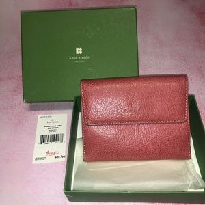 Beautiful KSNY Georgetown Francis French Wallet is made from Pink cowhide leather and features a snap close coin pocket, id window, 5 card slots and 3 slides. Champagne custom woven lined and logo imprint. Comes with Kate Spade Box and original price tag.