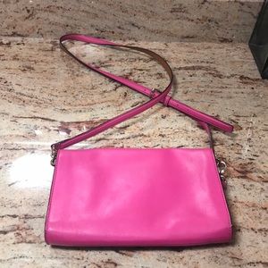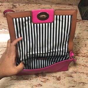 Pink Kate Spade crossbody bag with black and white accent color inside. Gold accents.