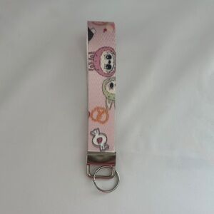 Adorable pink keychain featuring a cute character design. Perfect for adding charm to your keys.
