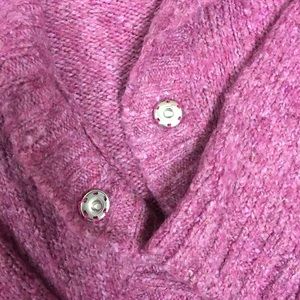 Super cozy open knit sweater with shawl collar design. Looks great open or close, has one clip-on button.