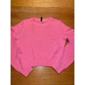 Pink Knit Cropped Sweater With Ribbed Hem & Cuffs - Cozy & Stylish For Any Casua