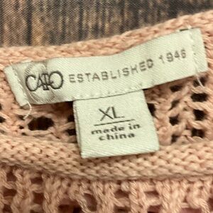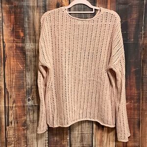 Cozy pink knit sweater with a stylish openwork design. Perfect for layering.