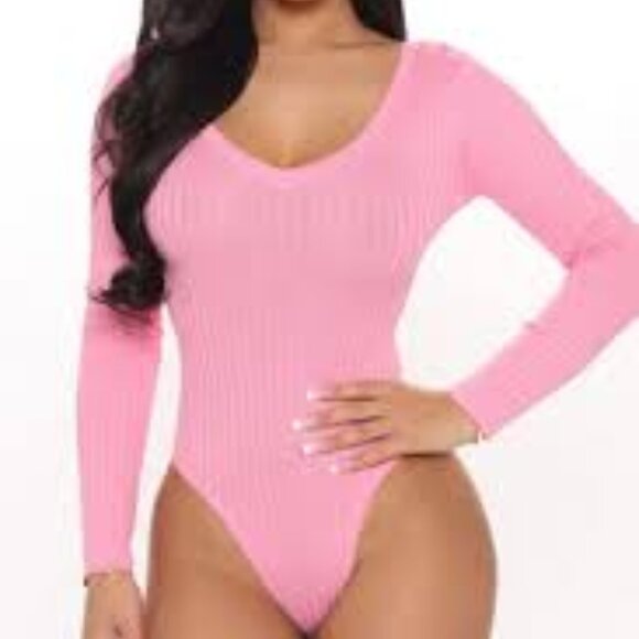 Pink Knit V Neck Bodysuit 3x Fashion Nova