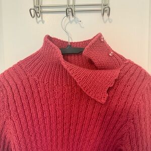 Cozy and stylish pink women's sweater, perfect for any occasion. Cute buttons at the collar.