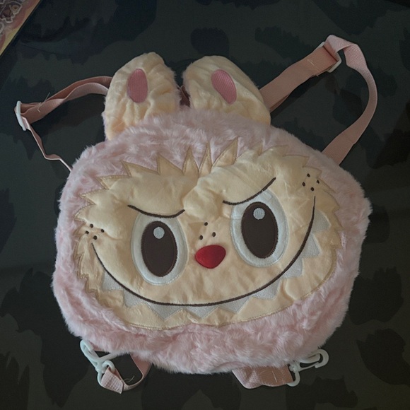 Adorable pink Labubu backpack for kids. Perfect for carrying small essentials with style.
