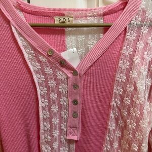 Pink Lace Button-Up Top