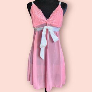 Pink Lace & Mesh Babydoll Chemise Lingerie top Size M fairy coquette romantic