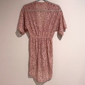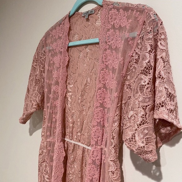You can either wear this as a robe or as a cardigan type thing, but either way you will look fabulous! It comes down to about mid-thigh, and it’s a hi-low style. Elastic around the waist so it’s very flattering! It can be tied as well. 💕