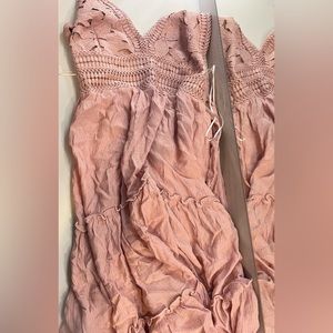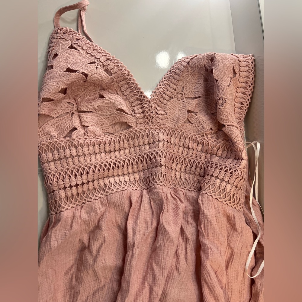 Pink Lace Ruffle Dress! Never worn new with tags. Adjustable straps and very nice material. Ties in the back. Originally bought for $18, Size large!